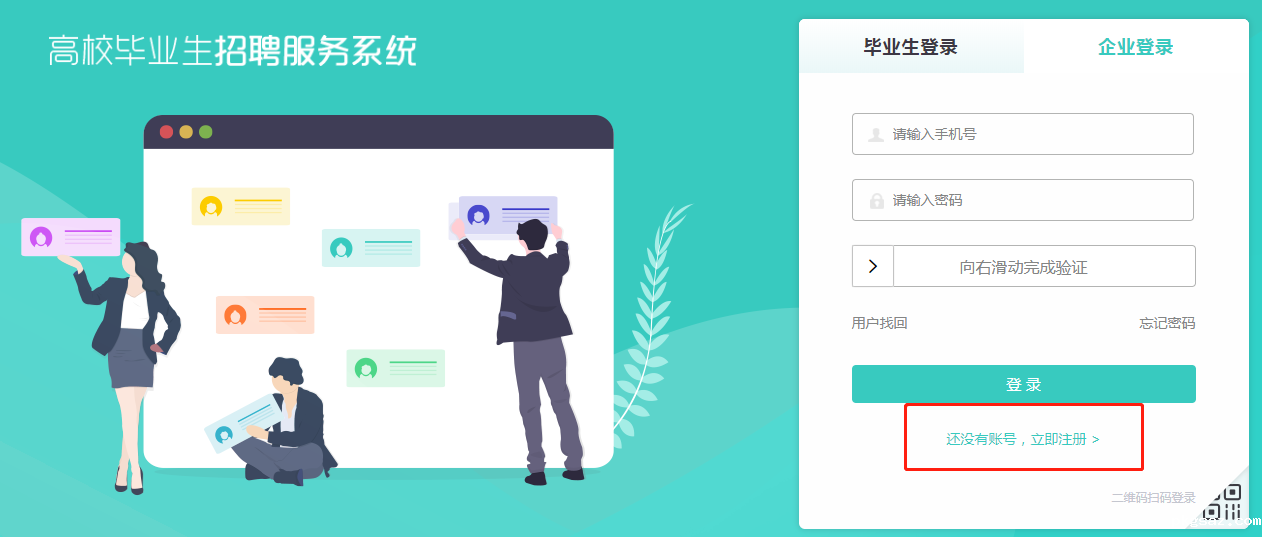 已注册的用人单位请通过手机号登陆系统,如果无法登陆,点击右下角“忘记密码”按钮,通过短信验证码重置密码登陆。如忘记手机号,请点左下角“用户找回”按钮。