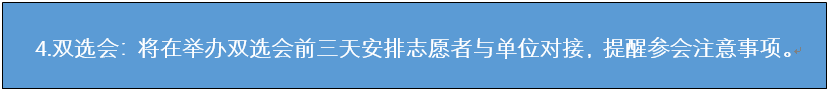 备注:因参会场地有限,线下双选会报名时间截止于会前五个工作日,报满为止。我们将以企业招聘需求量以及与我校专业匹配情况、可提供岗位数量、报名时间综合考虑筛选参会单位。双选会相关信息请关注就业网“通知公告”及就业网企业账号后台“双选会”板块。